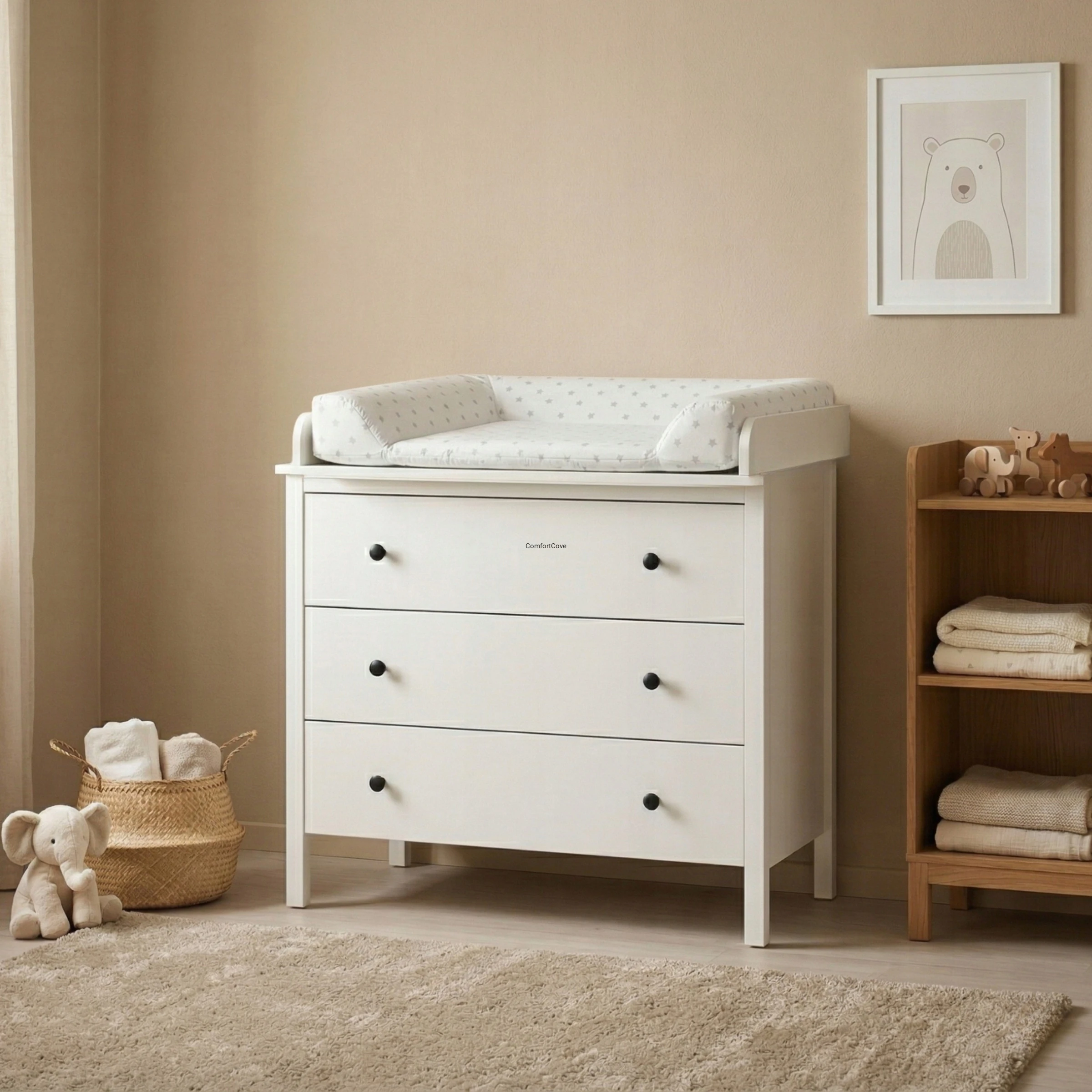 Funkcjonalna i wygodna nakładka do przewijania na komodę to idealne rozwiązanie dla rodziców, którzy chcą stworzyć bezpieczne miejsce do pielęgnacji dziecka bez zajmowania dodatkowej przestrzeni. Klasyczna biel i uniwersalna konstrukcja sprawiają, że produkt doskonale pasuje do każdego wnętrza.