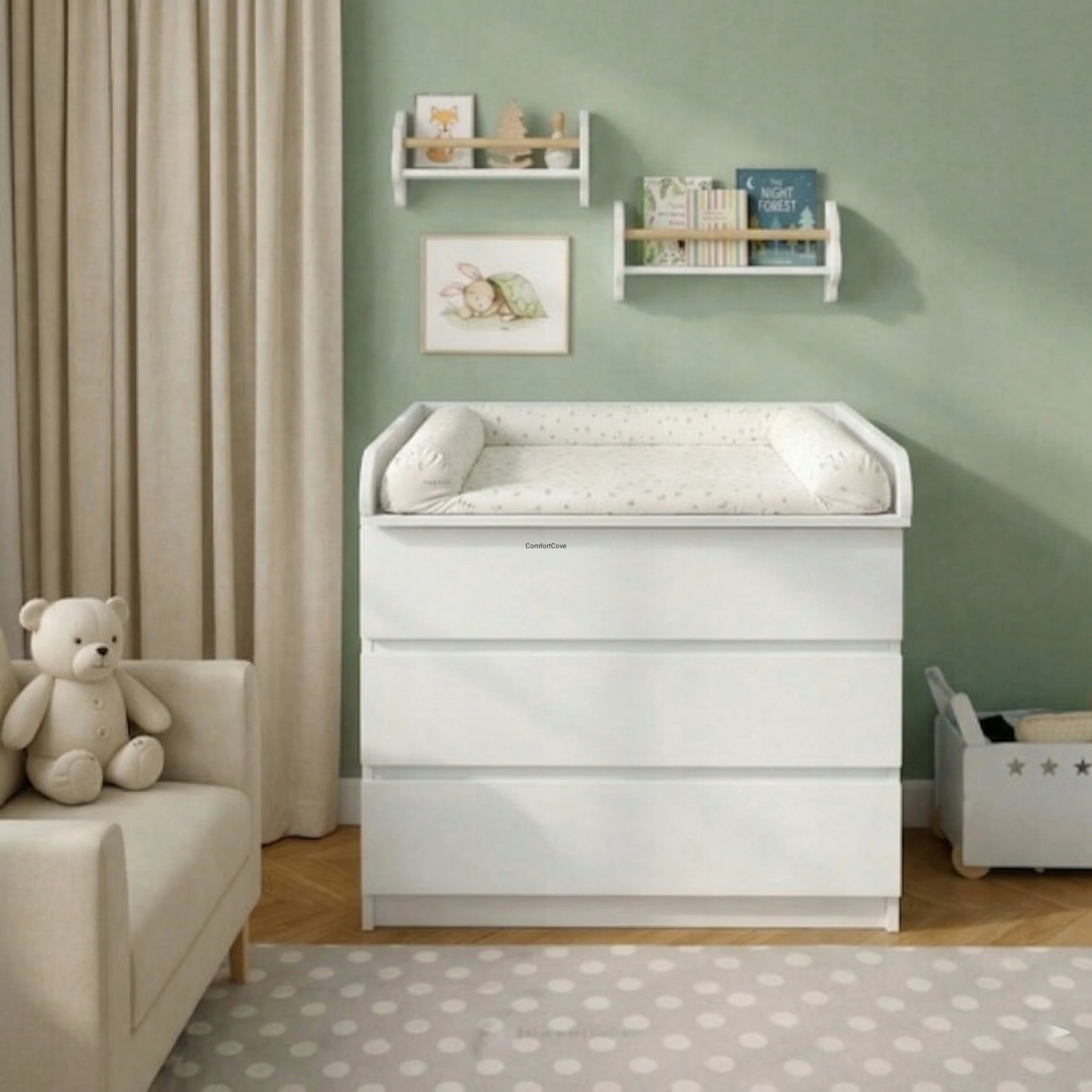 Uwaga: Przedmiotem sprzedaży jest wyłącznie nakładka do przewijania. Komoda oraz materac nie są częścią zestawu.