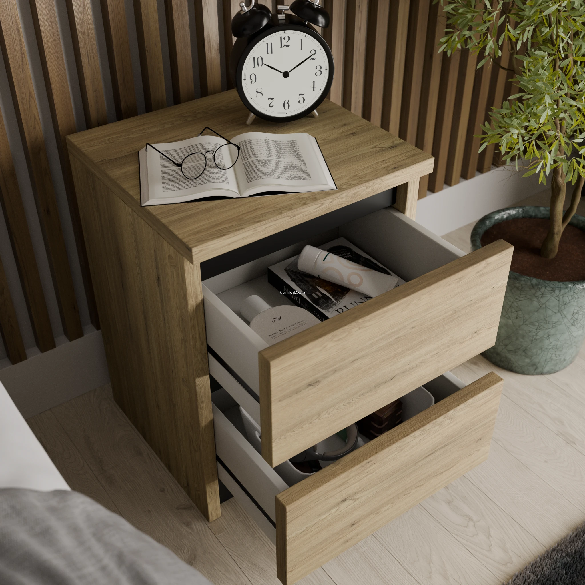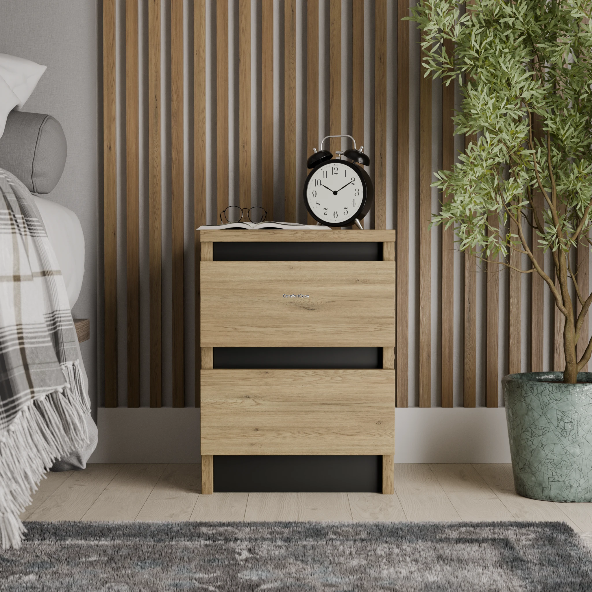 Nowoczesna szafka nocna ComfortCove łączy funkcjonalność i elegancję, dzięki czemu świetnie sprawdzi się w każdej sypialni czy biurze. Jej kompaktowy rozmiar i solidne wykonanie czynią ją idealnym rozwiązaniem do małych i stylowych przestrzeni.
