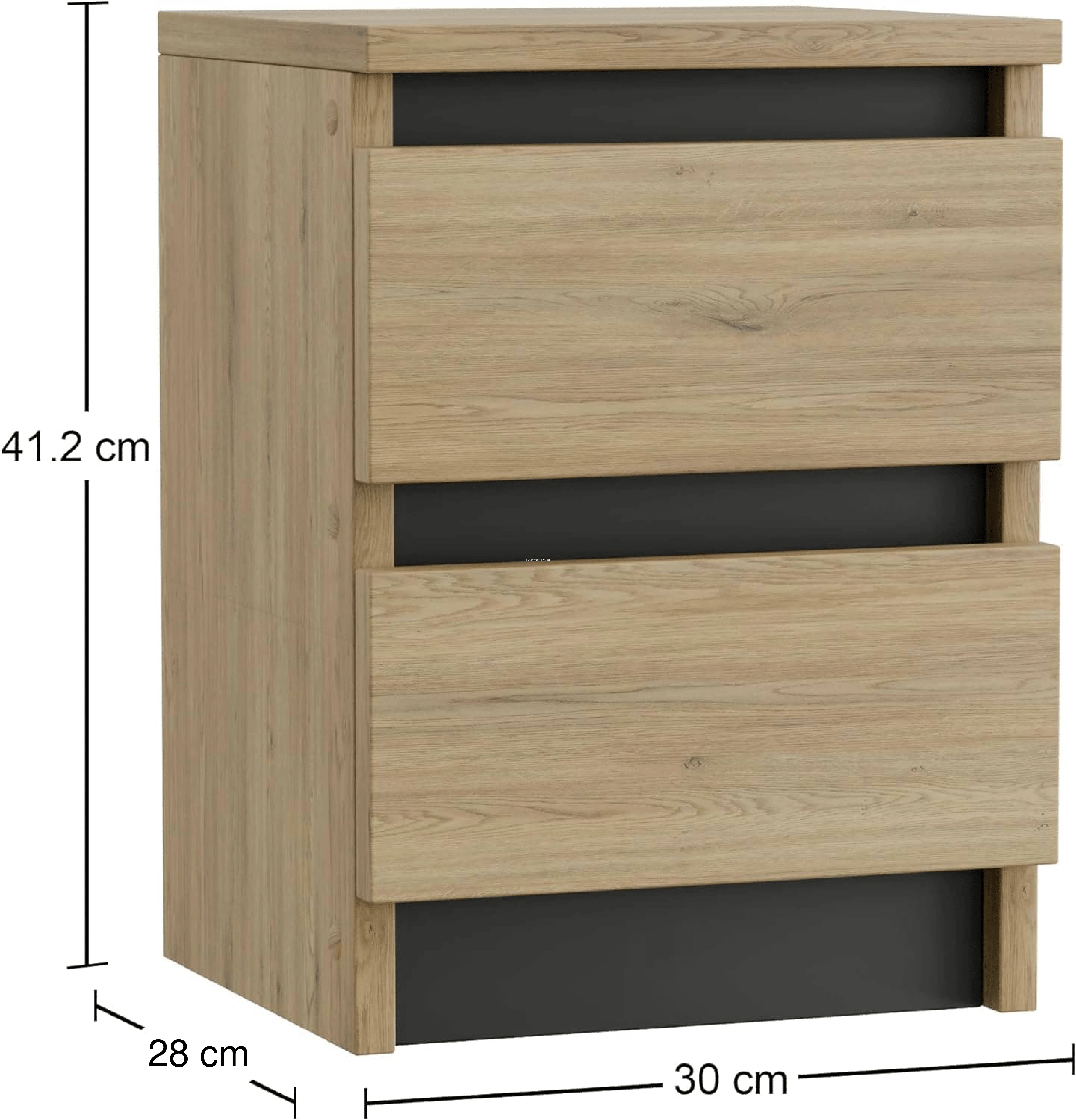 SZAFKA NOCNA 30x28 CM Z DWOMA SZUFLADAMI CZARNY MAT / DĄB TORRO – ELEGANCKA, KOMPAKTOWA I FUNKCJONALNA