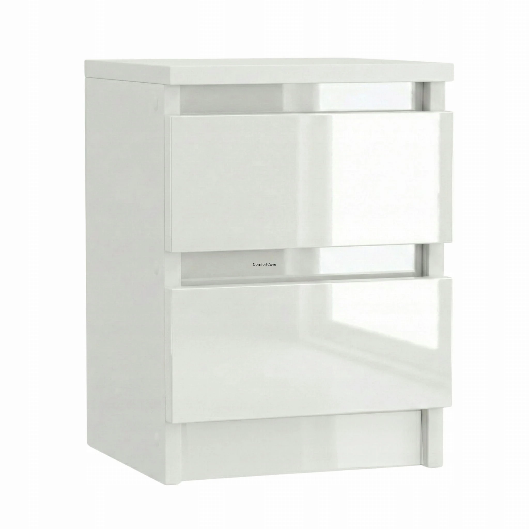 SZAFKA NOCNA BIAŁA POŁYSK 30CM 2 SZUFLADY STOLIK DO SYPIALNI