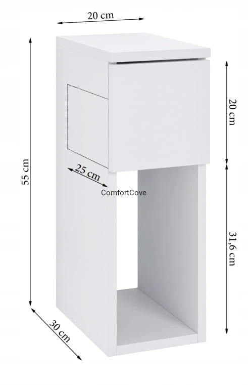 SZAFKA NOCNA Z PORTEM USB/C 5V BIAŁA WĄSKA 20x30x55 FUNKCJONALNA I NOWOCZESNA
